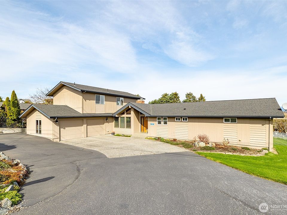 Welcome to this inviting, sprawling, 1½ story lovingly and dutifully cared for home! Featuring the ease of main-level living w/ just over 3100 sq. ft., 3 bedrooms, 2.25 baths, perched on a shy ½ acre lot. A striking wood inlaid vaulted ceiling, brickwork that houses a gas fireplace, wall of windows highlighting the iconic valley view, dining room, kitchen w/ upgraded appliances, hobby/office area w/brick encased gas fireplace. Down the hall features a ¾ bath, 2 bds, primary bd w/French doors. Walk-in closet, ensuite full bath w/jetted tub. Upstairs, a large room w/ ½ bath, walk-in closet. Could be used as a 4th bd, yoga studio, playroom. A fully-fenced backyard that is ideal for entertaining, gardening, or just relaxing on the deck.
