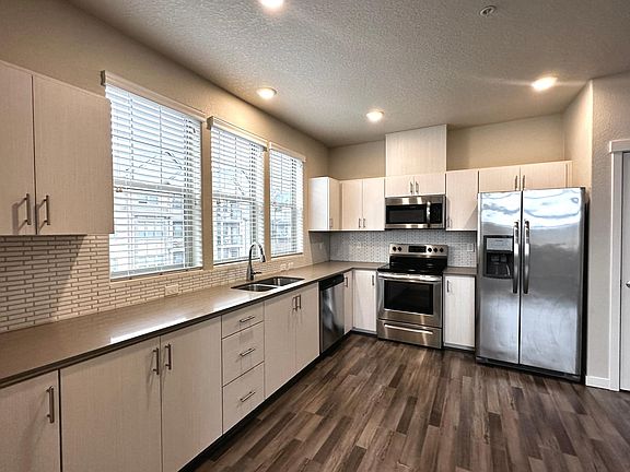 Available now. Utilities included! Water, sewer, trash, 2-car parking with garage, gym, swimming pool, and flat screen TV ALL included in rent price! Rare rental opportunity in the beautiful River Terrace community - this near brand new construction is located in Beaverton, just 15 minutes from Nike, 20 minutes from Intel and a 10-minute walk to shopping at Progress Ridge. Swimming pool, gym, BBQ, bocce ball, and parks all right outside. Top rated elementary, middle and high school. (Scholls Heights Elementary, Conestoga Middle, Mountainside High). Up to 2 pets allowed. Light bright slab quartz kitchen and bathrooms with beautiful wood floors and carpets throughout. Walk-in-closets and laundry room with energy efficient washer/dryer. Private balcony. All appliances included. Garage. UTILITIES INCLUDED (except electric). - MASTER SUITE: - En-suite private full bathroom - Walk-In Closet - West-facing windows - LIVING ROOM: - 18' Vaulted Ceiling - Extra-tall west facing windows for beautiful sunsets - Open floor plan between kitchen and living, perfect for entertaining - KITCHEN: - Quartz Countertops - Designer Backsplash - Modern Cabinets - Pantry - Stainless steel Whirlpool fridge, dishwasher and electric stove - LAUNDRY - Energy efficient Whirlpool washer/dryer - BEDROOM 2 - Perfect office, guest room or children's room - 2 big windows allow for lots of light - BEDROOM 3 - Perfect office, guest room or children's room - Large walk-in closet - GUEST BATHROOM - Tucked off main hallway across from bedroom 2&3 - Full shower and bathtub Click 'Apply Now' on Zillow to apply. $25/month pet rent. $2400 security deposit due at signing. Tenant pays electric. 12+ month lease preferred.