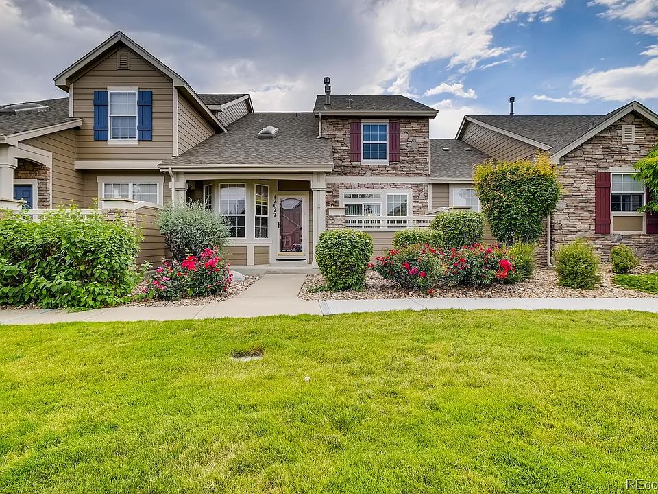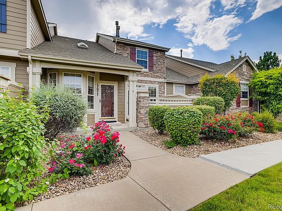 Vaulted ceilings and a cozy fireplace welcome you into this light, bright, and well cared for townhouse in coveted Sunrise Ridge. The warmth of solid wood floors carry throughout the main floor, stairs, and loft area. The kitchen showcases SS appliances, tall kitchen cabinets, beautiful granite counters, and opens to the dining area for easy entertaining. An open staircase leads to 2 beds, 2 baths, and a large loft area on the second floor, including a well appointed master suite with vaulted ceilings and a private 5 piece bath. Plenty of room in the finished basement and attached 2 car garage with bump-out for extra storage. Great flow throughout and well designed with a bathroom on every level. Enjoy maintenance free living with snow removal, grounds and structure maintenance all taken care of by HOA. Nearby parks, trails, golf, shopping, Arvada dog park and reservoir, as well as easy access to Denver, Boulder, and the mountains.