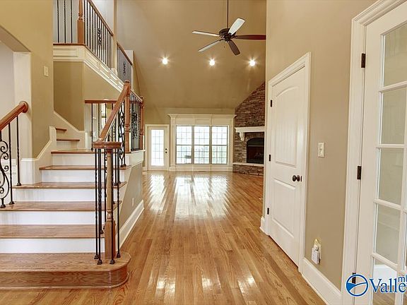 ASSUMABLE LOAN FOR VETERANS @ 2.25% & Owner Financing w/ large down payment. RARE FIND Executive open floor plan home on unrestricted almost 3 acre treed lot. Convenient to Huntsville, Decatur! Chef's dream kitchen with 48" gas cooktop w/ griddle, convection double ovens, large island w/ storage & seating. Family w/ soaring vaulted ceiling, stone FP, surround sound & gorgeous view of wooded back yard. Perfect for entertaining inside and out! Owners suite includes Walk-in closet with built-ins and glamour bath with heated tile floor, whirlpool tub. large tile shower with 2 shower heads & bench. 3 other bedroom each w/ ensuite bath. Loft area with built-ins & tube skylights. Upstairs bonus.