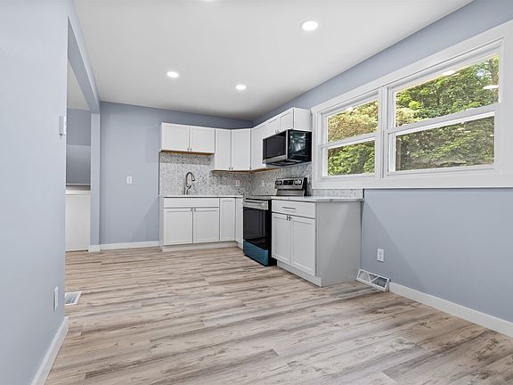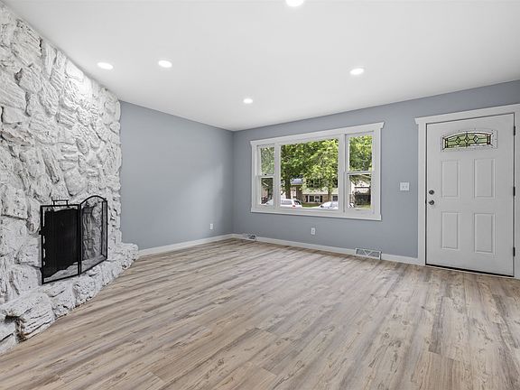 Beautifully remodeled tri-level in the heart of Belvidere with 4 bedrooms, 1.5 bathrooms and oversized 2-car garage! Light and bright living room with new vinyl plank flooring, large picture window and wood burning fireplace. Open concept kitchen with new white Shaker cabinets, quartz countertops, new stainless steel appliances and tile backsplash. Dining area next to kitchen. Spacious family room with new flooring and new sliding patio door that leads out to backyard. The upper level has two spacious bedrooms with newer vinyl windows and brand new carpet as well as a brand new full bathroom that features new tub, tile surround, vanity and toilet. The lower level has two more bedrooms with new carpet and newer vinyl windows and half bathroom with new toilet and vanity. Unfished lower level has laundry area and plenty of room for storage! Freshly painted, white trim throughout and new lighting throughout. New roof, AC and 80% of the plumbing is new. New fence in backyard. Prime location that's walking distance to Fridh Park, minutes from shopping and Bypass 20.