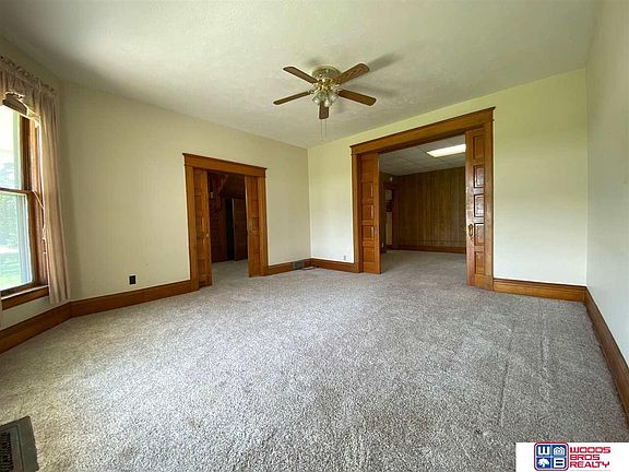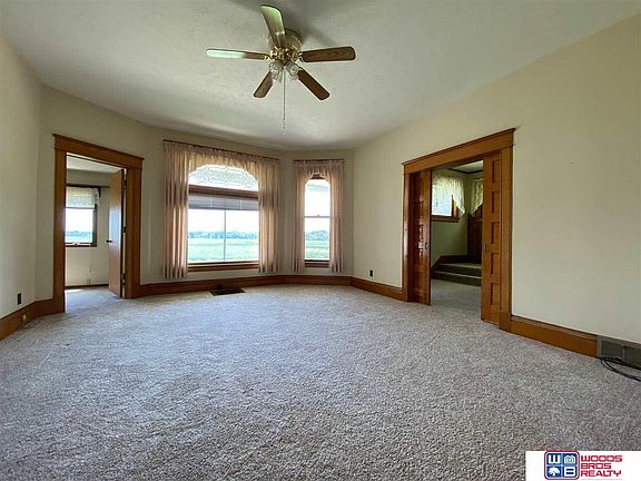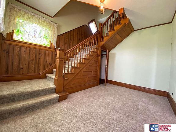 Amazing home and acreage! 5.4 acres situated just 5 miles NW of Seward this 4 Bed / 2 Bath home features double sets of pocket doors, 9'-ceilings on the main level, large foyer, covered front porch and amazing leaded glass stained windows. Separate formal and informal dining, office/den area and first floor laundry. Large closets in all bedrooms, with double closets in master. Maintenance free vinyl siding. Property includes a 24'x41' 4-space tandem garage, 30'x41' shop, 49'x84' dirt floor machine shed, 3 grain bins + other out buildings.