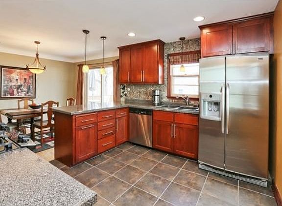 Upper master bd suite w/separate sitting rm, walk-in closet & luxurious bath! Gorgeous kitchen w/cherry cabinets/tile fl/ss appl. Fin lwr lvl fam rm, updated basement & huge storage rm. Fenced yard w/large deck & 2 car garage. New roof! Walk to Lake Nokomis!