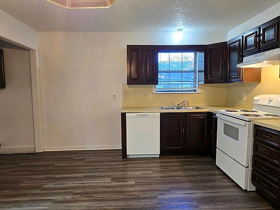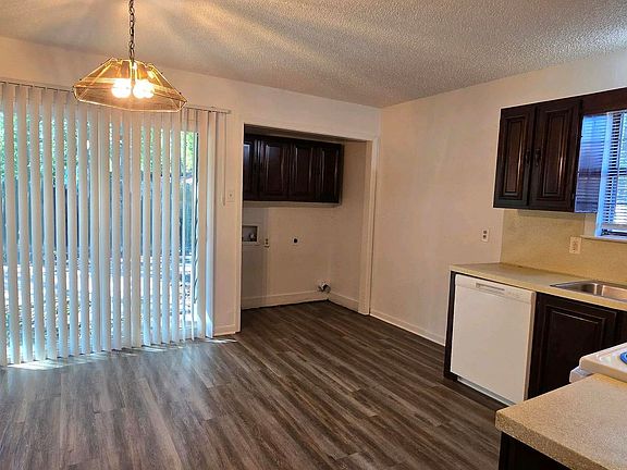 The spacious living room flows into an eat-in kitchen with plenty of cabinet and counter space. The kitchen comes equipped with a stove/oven and dishwasher, and a sliding glass door opens to the back patioperfect for relaxing or entertaining. A laundry area with full-size washer and dryer connections is also included. Tenants may bring their own refrigerator, microwave, and washer/dryer.