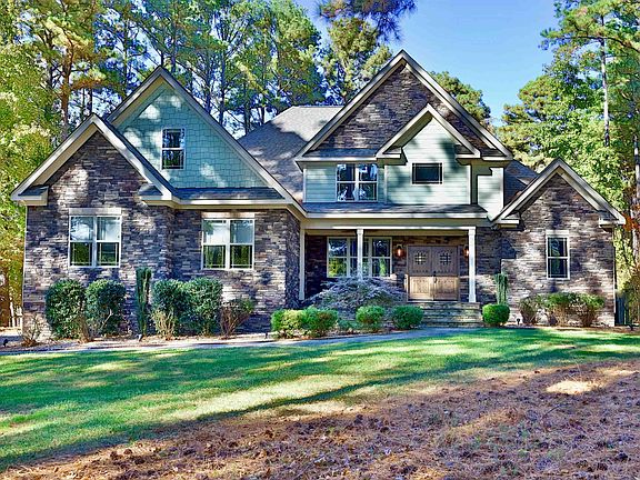 Outstanding country manor featuring exceptional outdoor space with heated/cooled & permitted cabana and an in-ground heated pool for all year use. This incredible custom built 3bed/2.5bath w/potential for 4th bedroom, home features an electric gated entry, beautiful stone exterior, no city taxes, incapsulated crawl space, whole house generator, and nestled on a private 2 acre spread in a secluded yet convenient location! Loads of character throughout with crown molding, over-sized baseboards & Eng. hardwood floors. 1st floor owners suite with adjacent office, BI dog house, formal dining, flex room with mini bar, gourmet kitchen with DBL ovens and gas cooktop, laundry room with utility sink, stone wall gas fireplace, temp controlled garage and more! Near Rex hospital, shopping, dining, movie theater, and Harris Lake for boating/fishing.