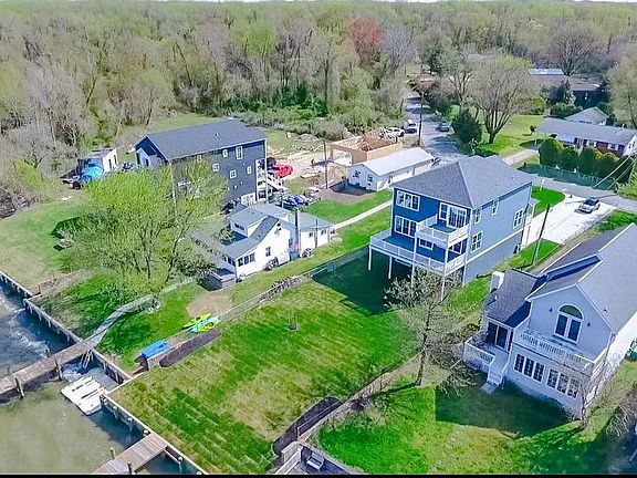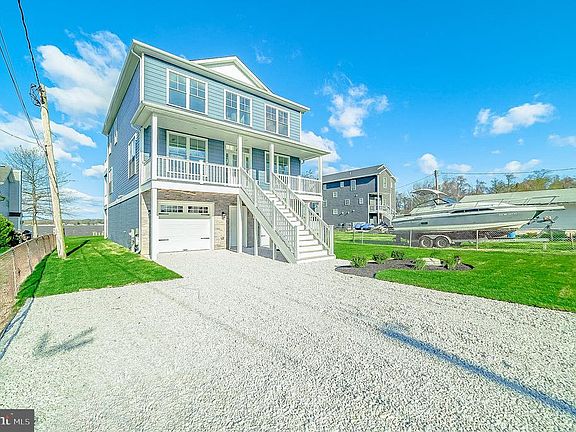 NEW CONSTRUCTION! Stunning new 4 bedroom, 3.5 bath waterfront home located out of flood zone. NO flood insurance required! Breathtaking waterview as soon as you walk in the front door of this home with its magnificant open flow floor plan and abundance of natural light. Gorgeous hardwood floors, crown molding, coastal accent lighting and recessed lighting throughout. Formal dining room with butlers pantry and wine fridge. Gourmet kitchen with custom hand milled cabinetry, pantry, unique leather finish granite counter tops, breakfast bar & Energy Star stainless steel appliances. Sliders along back that open to expansive trex deck that runs the entire width of the home perfect for waterfront entertaing and dining. Family room off kitchen with couffered ceiling and gas fireplace with coastal shiplap accent wall and mantel made from a 110 year old floor beam from a Canton row home. Upstairs features master suite with tray ceiling and private waterfront balcony off bedroom with amazing 180 panoramic water views, walk in closet and additonal closet with bypass doors. Ensuite bath with luxury tile frameless glass shower with ceiling rainfall showerhead and standard showerhead. Modern free standing tub, custom made dual vanity with 2 linen stacks and bluetooth enabled built in speaker and mood lighting. Additional full tile bath and 2 additional bedrooms (one water view and one not) along with upstairs laundry room located on upper level. Lower fully finished level with full tile bath and two sliders leading directly out to this level, landscaped, no flood zone yard. Two car front loading garage and driveway spacious enough to park 4 additional cars. Brand new bulkead and 60 ft. pier. Sandy bottom with 4' mean low. Boating, jet skis, kayaks, fishing, crabbing or watching the sunset, this is the spot to be for waterfront living this summer!