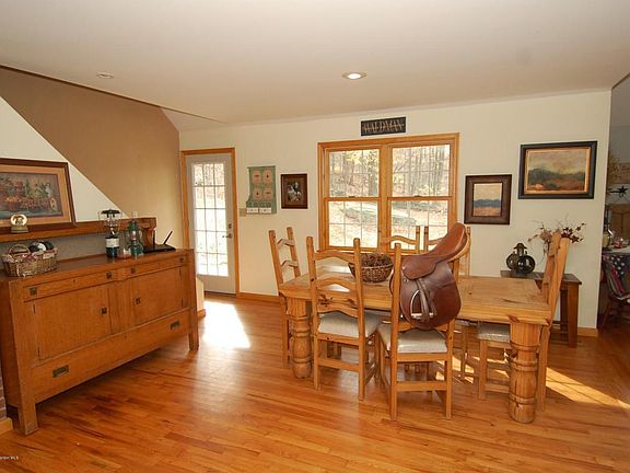 Beautiful 4 bedroom mountain chalet on 10 acres. Recently remodeled with all new: windows, insulation, roof & siding. 20x16 living room has cathedral ceilings & lots of windows for natural light & country views. Living & dining open to kitchen. French doors to covered porch offers beautiful view. Oak hardwood floors. First floor has 2 bedrooms & updated bath. Second floor has additional 2 bedrooms & half bath. 16'x14' mudroom with laundry. New fiber optic internet connection. Chimney for wood or pellet stove. Well pump & hot water heater @ 4 yrs. old. 1000 gallon concrete septic tank. Small barn has concrete floor, full loft, & underground electric to it- great for storage & hobbyist. Just 5 mins. to Elk Mountain Ski Area, and so convenient to Scranton, Montrose & Binghamton.