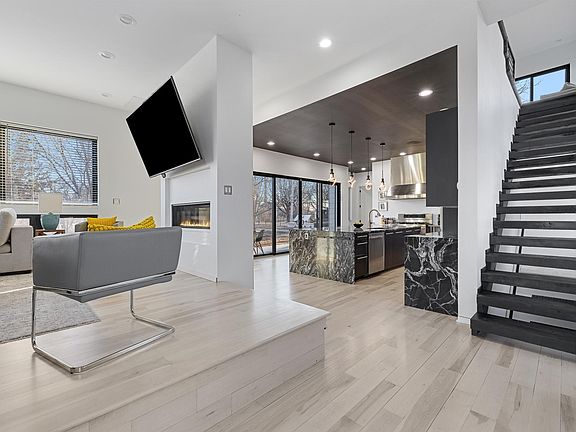 Designed for modern living, this stunning home features Andersen windows and expansive sliding doors, bringing in abundant natural light. The gourmet kitchen boasts high-end stainless steel appliances and elegant waterfall granite countertops. Maple floors add warmth to the main level, while the luxurious master suite offers a walk-in closet and a spa-like en-suite bathroom. Enjoy multiple outdoor spaces, including a ground-level deck, balcony, and a breathtaking rooftop deck with panoramic views of the city skyline. Located just three blocks from the Mississippi River and scenic walking trails, this home offers the perfect mix of style, comfort, and convenience.