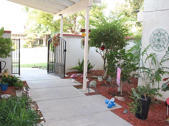 Sundale Golf Course beautiful home with 4 bedrooms, 2 baths a 2-car garage with RV parking. As you enter the home there is a spacious formal living room with vaulted ceilings, plenty of natural light, a formal dining area and an indoor laundry room. The lovely updated kitchen features granite counter tops, an island a pantry, French door access to the backyard with a view to the great room with a cozy fireplace. The master suite offers tray ceilings, crown molding, seating area, and a walk-in closet. This exquisite yard is perfect for entertaining & an outstanding setting for this delightful home. The beautiful backyard includes a covered patio with a ceiling fan, a sparkling pool, nice lush greenery and great views of Sundale golf course.