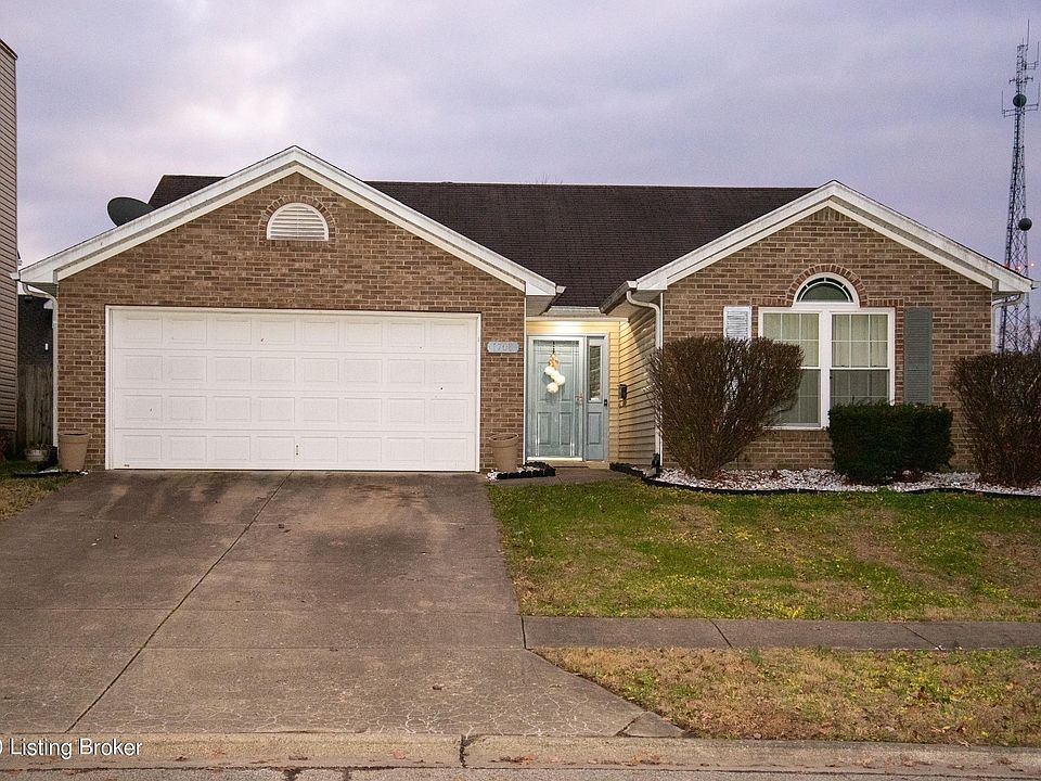 Gem By The Lake! This beautiful brick front home sits in front of a lake located in the subdivisions park. This open floor plan home comes with 3 bedrooms, 2 bathrooms, with an attached garage. You are greeted by the vaulted ceilings, within the living room, and the master bedroom, which also contains a private full bathroom. The spacious eat-in kitchen comes with stainless steel appliances and plenty of cabinets and countertop space. New French backdoors have been added to lead to the large private fenced backyard, with a patio. Schedule your showing today!