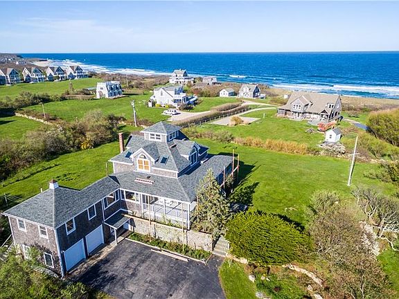 Take time to look at this perfect vacation home located just steps from Crescent Beach. Just grab your beach gear and walk on the deeded path to the quiet beach between Scotch and Mansion beaches. Bike to town, New Harbor or just walk across Corn Neck Road to the BI Club for tennis and boating activities. Relax on the wrap around porch enjoying sunrises and sunsets from the comfort of your own home. This custom home features an open living area with galley kitchen, dining area, den and living room. Pass through a sitting area and office space to a private master bedroom with full bath. Second floor has three guest bedrooms with full bath and spiral stairway to a viewing cupola with 360 degree views of the Island and ocean. Finished lower level is set up as a rec room large enough for ping pong or pool table with plenty of space for other games and TV viewing. Integral two car garage for storage of bikes, beach toys and two cars. All set on 5.1 acres of beautiful land. A warm and welcoming home with lasting appeal.
