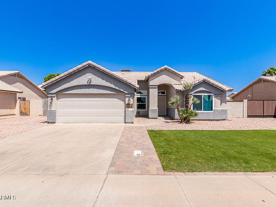 Updated 3 bed/2 bath home in Chandler features spacious floorplan, vaulted ceilings, newer dual-pane, low-e windows & natural light throughout. The kitchen has a double oven, painted cabinets, granite countertops, breakfast bar, pantry and fresh paint throughout the home! The family room is an entertainers dream w/ beautiful bay windows, french doors & fireplace. The Owner's suite has a large walk-in closet, luxurious bathroom w/ double sinks, quartz counters & separate tub/shower. The rear yard features a 3 year 'new' sparkling pool, large covered patio extended w/ gorgeous brick pavers, low-maintenance artificial turf, easy-care landscaping & double gate. Located in the highly desired Provinces community near lots of shopping, dining, entertainment & great schools. Welcome home!