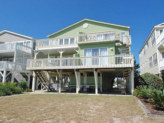 For sale by owner, 2% buyers agent commission available. BEACH FRONT Coastal Carolina at its finest, from your backyard to the beach, a few short steps away! Simply put, at this price point this home is extremely rare. With the unique combination of price, quality, size, and location it will be nearly impossible to duplicate. Overlooking one of the best family beaches on the coast. Extensive makeover to the exterior. New roof with skylights, 30 year architectural shingles, etc. etc. Entire duplex pressure washed, rust treated, primed, and painted. This open granite kitchen with island flows seamlessly into the spacious living and ocean view dining room. Fully furnished and well appointed. Featuring four large bedrooms, each offering marble tile walk in shower. Outdoor fun that includes shower under house, utility sink and counter, perfect for rinsing off after a day at the beach. Covered parking space (2+) includes two large storage closets with driveway parking (4+).