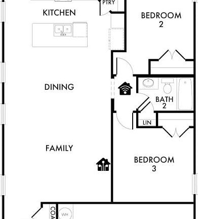 The Cottonwood is a great one-story plan! This home features a coat closet in the entryway and opens to the open-concept family room, dining room, and California kitchen with an island and walk-in pantry. The large owner's suite features a dual vanity sink, walk-in shower, linen closet, and walk-in closet. This home has two secondary bedrooms and a second full bathroom with a linen closet. Enjoy summer BBQs on the covered patio.