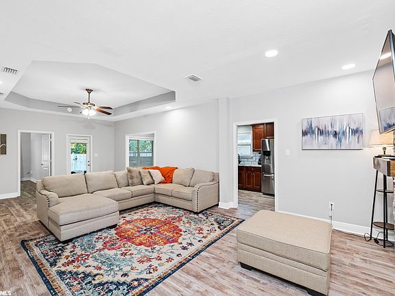 Looking for a home with NO HOA plus TURN KEY Ready? Look no further!! This Beautiful 3 bedroom 2 bath BRICK home is Immaculate. You'll fall in love as soon as you see the Pinterest worthy FIREPLACE accent wall. Recess lights and vinyl plank flooring flow throughout the home - NO CARPET. The galley style kitchen has granite countertops plus all stainless steel appliances. The breakfast area, pantry and double garage have custom-built, industrial-style shelving. Granite countertops in baths. Primary bedroom has tray ceiling with a custom SHIPLAP wall!! As you walk outside onto the 14X15 patio, you'll see the custom OUTDOOR KITCHEN area. Follow the decorative bricks that lead to the FIRE PIT, the STORAGE SHED, and the SMOKE HOUSE with 1 Smoker! Gutters and Downspouts!! Privacy Fence!! Located close to downtown Foley, restaurants, shopping centers, and apx 15 minutes to Gulf Shores Beach! Short Term Rentals are Allowed; makes it a great location for an Airbnb!! *See Agent remarks for Showings* Buyers or buyer's agent to verify any information contained in listing and all info that are deem important.