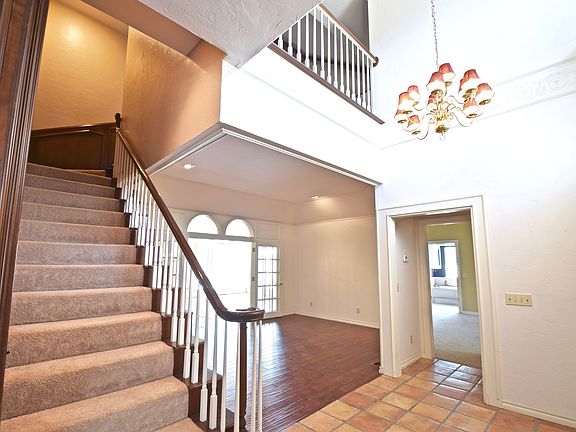 This Stylish Property is Nestled on an over-sized lot on hole #4 of Crimson Creek Golf Course. Upon Entry, You will be greeted by beautiful tile floors and hard wood flooring. This 4 bedroom,4.5 bath estate comes complete with formal dining and living room. The welcoming kitchen is open to the breakfast area and spacious family room with large windows. The upstairs game room and media area are perfect for entertaining or enjoying time with family. Home Features include Plantation Shutters, Gorgeous White Wood works, Crown Molding, Very Neutral Color Palette, Storage Galore! The backyard is the perfect getaway featuring hot tub & pool area. The 3 car garage + porte-cochere, direct access to the golf course, a spacious storm shelter, and bath are perfectly located in the over size garage. Home is conveniently located minutes from downtown OKC with out the increase in price!! This dream home is an absolute must see!!