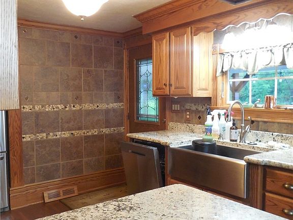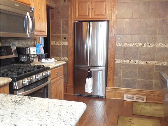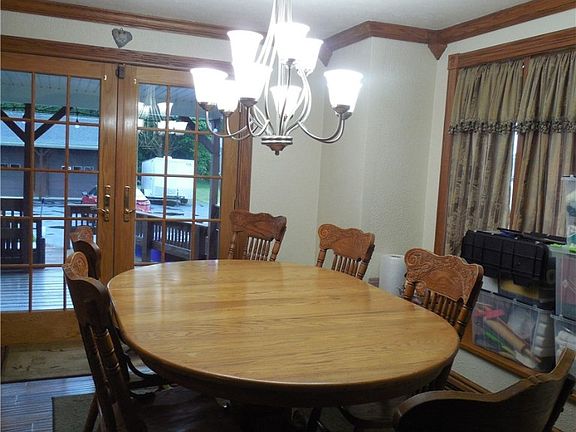 Where to begin? There are many details all through this house. Kitchen beautifully updated with ceramic tile detail, granite counter top and oak cabinets. Complete with appliances included. Solid oak doors and crown molding. Anderson windows. Additional room on main was used as an office/nursery. French doors from dining area leading to the newer multi level deck. Hot tub included. Upper level has two bedrooms, an additional full bathroom and a sitting area at the top of the stairs. The blacktop driveway leads to a three car garage with room for anything imaginable. An additional outbuilding for gardening equipment. Level property for easy care. Perennial gardens in the back. Full walk up basement. Safe in basement will remain in the house. Laurel School district. Easy access to Rt 79, Rt 80 and Rt 422