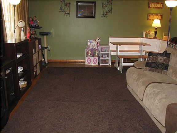 Move in ready home featuring a great eat in kitchen with custom ceramic tile work and all appliances stay. Formal dining room and nice sized living room. All the original hard wood flooring throughout the home is in great condition. Second floor features an updated full bath and 3 great bedrooms. Check out the room sizes, including the large living room, large master bedroom, and awesome finished lower level! Everything is tastefully done, with great paint colors. Superb man cave with knotty pine walls, a bar, a powder room, and tremendous storage. The swing set & shed is included.