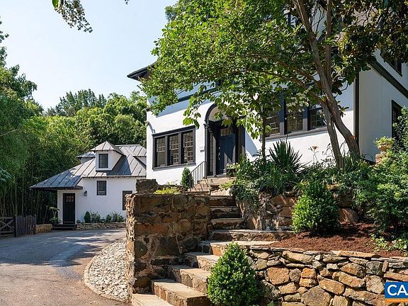 One of Charlottesville's premier properties, tucked away on a private .28 acres, a few blocks to UVA main grounds, hospital & Scott Stadium. This historic property includes a flawlessly renovated c. 1914 Tudor Revival home, designed by noted architect Eugene Bradbury AND a fabulous 1,100 square foot, 2 bedroom, 1.5 bath guest cottage. Exquisite details include: expertly re-plastered & painted interior walls, arched openings, painted hardwood floors, restored exterior (stucco, trim, paint), 4 fireplaces, true divided light windows, elegant dining & living spaces including an all-glass "conservatory" overlooking the gardens. Impressive landscaping features numerous stone walls, terraces, mature plantings & trees (don't miss the towering redwood!) designed by Orland E. White, who bought the home in 1928 & also designed the VA State Arboretum. The chic, c. 1930 guest cottage features a full kitchen, open living /dining spaces & delightful stone-walled courtyard. Spoil your guests or generate substantial income through long or short term rentals. Unique opportunity to own a remarkable property right in the middle of all things UVA!