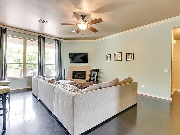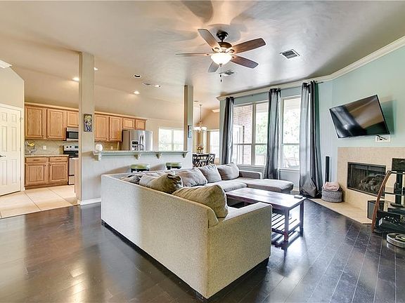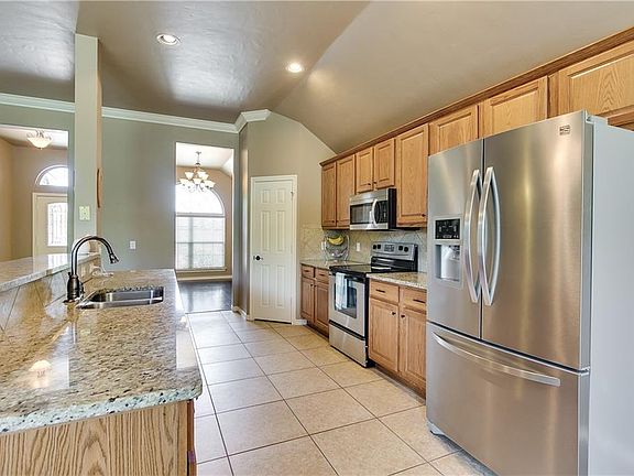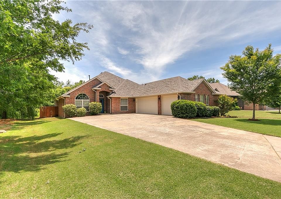 NEW lower price & the seller is offering a $1,500. paint/update allowance!!! Charming home with three car garage and spacious driveway for guests. Oversized driveway great for guests. Open floor plan complete with wood floors, granite counter tops, and stainless steel appliances. Formal dining or formal living could be used as study or game room. The kitchen overlooks the dining and living room with tall ceilings and plenty of windows. The crown molding, vaulted ceilings, storm shelter, and a large, recently stained back deck for entertaining are just a few of the great details of this home. Spacious master suite with NEW wood tiled floors, walk in closet, shower and double sinks. Laundry room off of garage with storage. NEW roof! Newer fence, wooded common area behind the home, and the community park is right next door making this property truly unique!