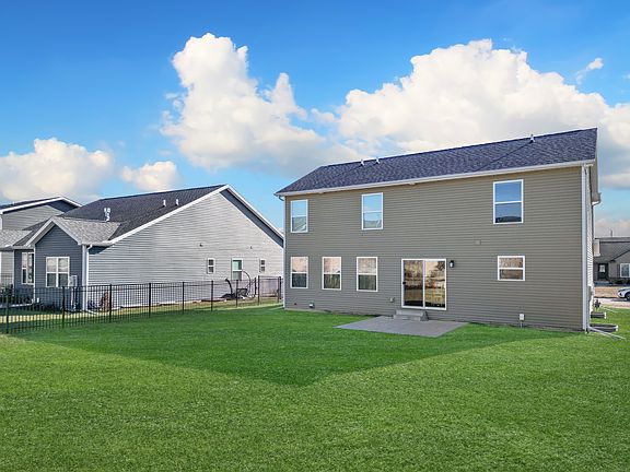 Welcome to 1708 Keybridge Way, a stunning, better-than-new custom-built home in East Bloomington's sought-after Hershey Grove Subdivision. This 2-story gem, built in 2021, boasts over 2,000 sq. ft. of impeccably designed living space with high-end upgrades you won't find in a typical spec home. Located in a prime spot near State Farm and within the highly rated Unit 5 school district, including Normal Community High School, this home offers both convenience and luxury. From the moment you arrive, the home's gorgeous curb appeal stands out, featuring a full-width front porch that invites you inside. The grand 2-story foyer, bathed in natural light from the stunning front window, creates an unforgettable first impression. Rich wood-look LVP flooring flows throughout the main level, enhancing the seamless and open layout. The chef's kitchen is a delight, featuring an abundance of upgraded Hickory cabinets-including 42" uppers that extend to the ceiling-quartz countertops, under-cabinet lighting, a massive island, a full stainless steel appliance package, and additional pantry cabinets with a tucked-away microwave. The main level also offers a spacious family room, a dining area with sliding glass doors leading to the backyard patio, a powder room, and a versatile flex room-ideal as an office, playroom, formal dining, or even a future bedroom. A charming custom drop-zone with built-in bench seating leads to the oversized two-car garage. Upstairs, the well-appointed primary suite boasts a large walk-in closet and an en suite bath with a double vanity and walk-in shower. Two additional bedrooms, a full bath, and a convenient second-floor laundry room (complete with a mud sink) complete the upper level. The unfinished basement, with its 9' ceilings, egress window, and rough-in for a future bath, gives you a head start in future basement finishing, as the future bedroom, bath and family room areas are already framed up! Thoughtful upgrades set this home apart, including solar panels for fantastic energy savings, a water backup sump pump, radon mitigation, high-efficiency Trane HVAC with humidifier, a Honeywell Fresh Air Intake System, and an advanced Cat-6 wiring system for superior connectivity. This extraordinary home combines style, function, and efficiency in one unbeatable package. A must-see! Schedule your showing today!