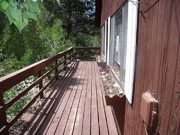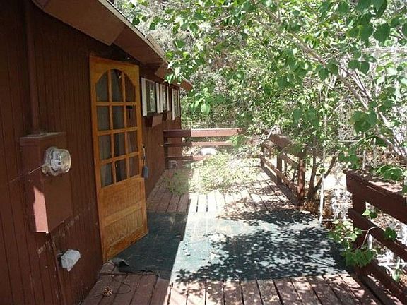 Adorable gingerbread chalet like mountain home. Very liveable floor plan with open kitchen, dining area & living room. 2 nice size bedrooms & full bath on lower level. One large bedroom, bonus room, & half bath on upper level. Newer carpet, paint & fixtures throughout. Lovely treed lot that provides privacy all around. Landscaped all around with a bulb garden & blooming shrubs--with a little TLC the yard would again be beautifully manicured. Wraparound deck provides plenty of room to entertain & enjoy outdoor mountain living at it's best. Priced to sell! (Wood-burning stove will be removed prior to close of escrow as required by the SJAPCD)