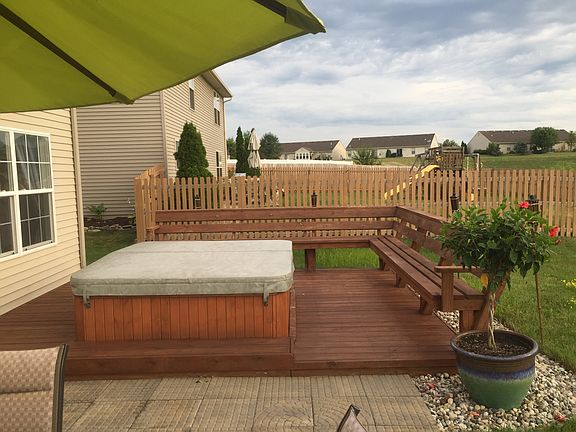 Very spacious 1900+ Sq. Ft. Two-Story home offers 3 bedrooms and 2 full and 1 half baths! Inviting, granite tile adorns the entry way to the Living Room featuring a beautiful gas log fireplace. Expansive Eat-In Kitchen with separate, large pantry and separate Formal Dining Room. Large 15x12 Loft/Family Room on second floor can easily be converted into a 4th bedroom. Generous 19x14 Master Bedroom with Substantial Walk-In closet and Deluxe Full en Suite Bathroom featuring a Garden Tub and separate shower with Rainfall Showerhead. Convenient Laundry Room located on second level. Backyard backs up to a common area with views of two separate ponds. Extended back porch features beautiful cement pavers for extra space. Updates in last 5 years: new water heater and insulated garage door installed. Updates in the last 3 years include: new paint throughout every room, ceramic tile throughout kitchen and bathrooms, granite tile in entry area, partial privacy fence (that still allows views of the pond) and large deck that seats appx. 15 people along with a six person hot tub that will stay with the house! Lots of storage area created in garage for utilizing space! Conveniently located near Saint Francis University and Jefferson Pointe! Don't let this great home get away, schedule your showing to see in person!
