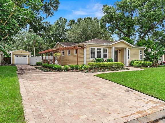 THERE'S NO PLACE LIKE HOME, THERE'S NO PLACE LIKE HOME! Come see how this house makes you feel at home the second you pull in the newly paved driveway as it approaches this charming 2bd/2ba located in the desirable Wellswood neighborhood- it will WOW you from the inside out. You are immediately welcomed by an OVERSIZED open concept living room/dining area with easy access to the kitchen, which features granite counters, stainless steel appliances (dishwasher recently installed) and french doors for extra light. The master bedroom has beautiful wood floors, HIS & HERS closets, as well as a master suite with an attached SPACIOUS laundry room. The second bath includes a Jacuzzi tub to relax and unwind after the end of each day. As if this wasn't enough, a FULL length covered back patio overlooks the HUGE newly sodded backyard, as well as an arbor-covered patio which accents the east side of the home. The detached 1 car garage/workshop boasts its own electric and plenty of space to park. You'll find the large storage shed offers plenty of storage space and is secured in the fully fenced in backyard. This prime location is just MINUTES away from the highly sought after SEMINOLE HEIGHTS area and DOWNTOWN TAMPA. Other newly added features: pavers on BOTH driveway & walkways, landscaped yard with new sod and mulch, recessed lighting, door trim, added insulation, NEW AC (2018) newer windows and window treatments, recessed built in bed in 2nd bedroom, and sprinkler system. Come make this your home today, Todo!