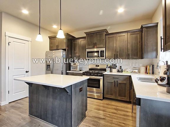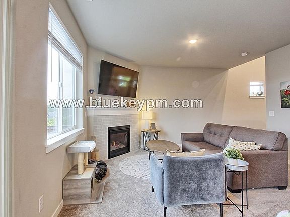 Beautiful 3 bedroom, 2.5 bathroom home in the Whipple Creek Village in Ridgefield just off I-5 at the NE 179th Street exit. It welcomes you home with a 2 car garage, covered entry and easy care fully fenced backyard with patio. The home features an open concept living floorplan. The family room area has carpet, a picture window overlooking the backyard and a gas fireplace. The kitchen and dining room have laminate flooring, an abundance of cabinets and counterspace, a gas stove and an island with eatery bar. Upstairs there is a bonus loft area and a laundry closet with convenience washer and dryer for your use. The bedrooms are spacious with double doored closets. The main shared bathroom has a large vanity and a tub/shower combo. You will love the expansive primary bedroom with picture window, walk-in closet and bathroom with dual sink vanity, shower and separate toilet room. This home has central air for your comfort. Tenant maintains yard. Dogs welcome by owner approval. No cats please. $800 refundable pet fee for each pet. Call Blue Key Property Management, Inc. $2695 Rent; $2695 Security deposit, $350 non refundable fee, $55 non refundable screening fee per adult age 18 and older. $800 additional refundable deposit per pet if owners allow pets. Renter's insurance required. Blue Key Property Management, Inc. licensed in WA and OR. 1708 NE 172nd Street, Ridgefield, WA 98642