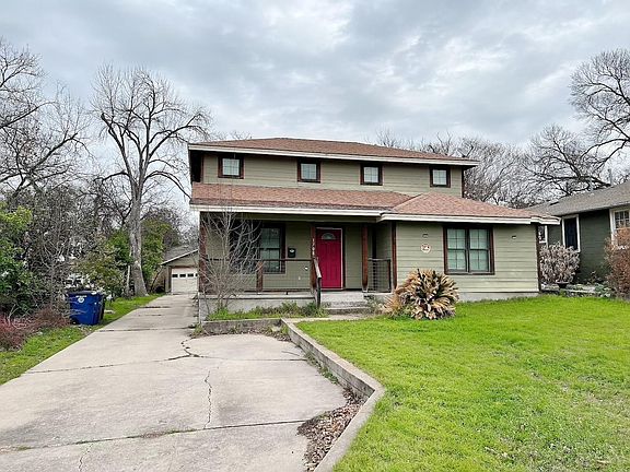 Brykerwoods 1940s classic minutes from downtown. 4 beds, 3.5 baths w/ primary bedroom down & detached 2 car garage. 2 living areas: formal living and a den. Formal dining, & kitchen with bar and breakfast area. Wood floors downstairs with tile in wet areas. Carpet & travertine tiles upstairs. Kitchen open to living with Corian counters, gas range, & stainless steel appliances. Washer, dryer & fridge also convey.