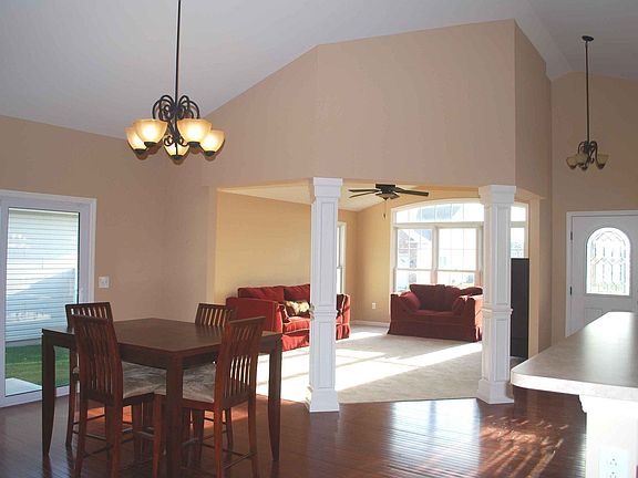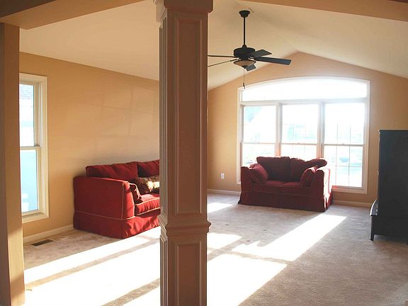 Move into maintenance free living in this 1,650 sq. ft. villa! Bright open floor plan with Grecian columns accenting the vaulted ceilings in the living room. Master suite with vaulted ceiling and bay. Spacious kitchen with large breakfast bar and pantry. Full basement roughed in for bath. 2-car rear load garage. Private yard with patio for your relaxation. Subdivision has walking path and gazebo. HOA fee is $195 per month which includes administration, water for irrigation systgem, building exterior maintenance, grounds maintenance, entrance and gate maintenance and insurance.