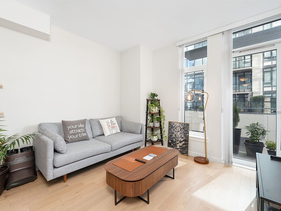 Welcome to Pinnacle on the Park, urban living at its finest. This south-facing, owner-occupied 1 bed + den has been meticulously maintained and is a perfect fit for those looking for a move-in ready home. The owner has upgraded the home further with blackout blinds and a fully built out cabinet system in the Den. Furthermore, some furniture pieces are included with the home. Only South Facing 1 bed + Den home that comes with a balcony. Located at the heart of Olympic Village, you just not only steps away from the seawall with the best outdoor activity the city can offer, but also steps away from the hottest cafes and restaurants this sought-after neighbourhood is able to provide. 2-5-10 New Home Warranty. Public Open House Saturday May 20th 1-4pm