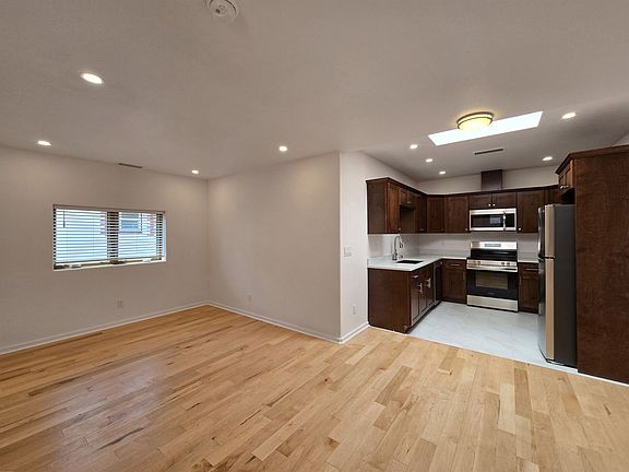 Now available for lease, this beautifully renovated two-bedroom, two-bathroom residence is located in the heart of Santa Fe's vibrant Railyard District. Close by are numerous galleries, restaurants, and entertainment options that define the neighborhood's charm. Inside, the home features wood flooring throughout, tile in the kitchen and bathrooms, stackable washer and dryer, recessed lighting, central air conditioning, and sleek modern fixtures. Both bedrooms include en-suite bathrooms with walk-in showers and ample closet space, offering comfort and privacy. The updated kitchen comes equipped with a refrigerator, dishwasher, and electric stove/range. A small front portal provides a welcoming outdoor space, and one dedicated off street parking space adds convenience. With a well-designed layout, stylish finishes, and a prime location, this home offers a contemporary and comfortable lifestyle in one of Santa Fe's most desirable areas. A small pet will be considered.