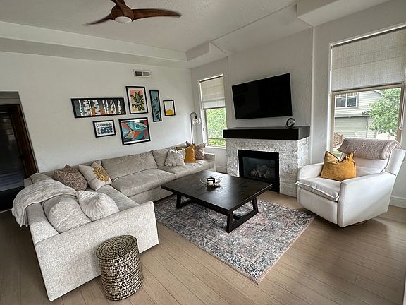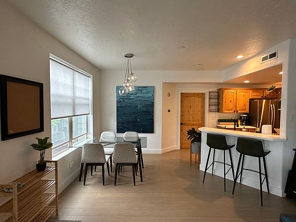 Newly renovated, turn-key, fully furnished with Arhaus and Pottery Barn, 2 bed 2 bath condo in a fantastic area. Two minute walk to restaurants, grocery stores, fitness studios, shopping and epic PC trail system. Attached 1-car garage and street parking tag incl. Easy walk to bus stop for quick ski access to Park City Resort and Canyons resort. No car needed to access Olympic Park mountain bike trails. Corner unit is fully turn-key including cookware, silverware and linens. King bed in primary bedroom, en-suite bathroom with double sink and modern walk-in shower. Queen bed in the second bedroom. Tons of light. Forced air heat and air conditioning. Electric fireplace. Updated Samsung appliances. 62-inch Q-led TV. Ring doorbell and Nest thermostat. Great deck with views of the mountains. Pets negotiable. 12 month lease only. Max 2 tenants. Tenants responsible for electric and gas. Owner pays water and trash. Renter pays electric and gas (these have never exceeded $50 per month, each). Open to a well-trained small animal (under 20 pounds) at an additional $100/month plus extra deposit. Home is available in August 2025 with a one-year lease. Smoking is not allowed inside the home. Security deposit due up front. One garage space and two community parking passes included. Every tenant is required to be on the lease. Credit check, background check and employment verification required for each tenant. Renters Maximum 2 adult tenants.