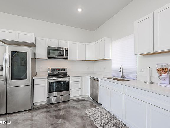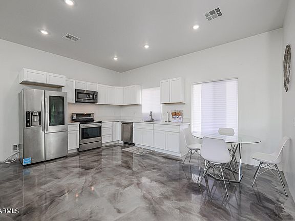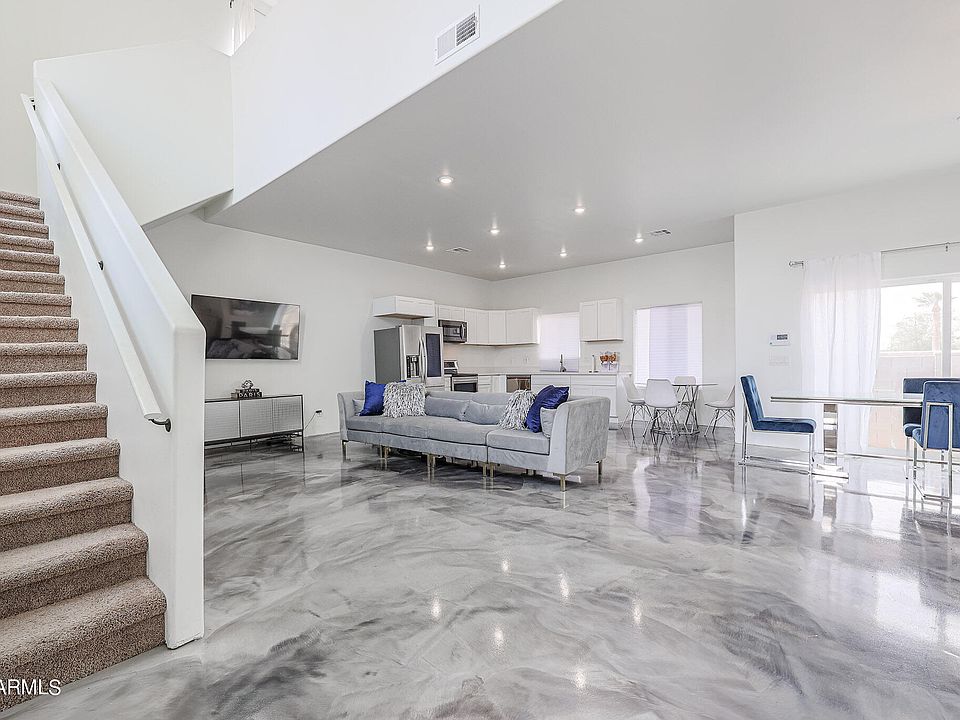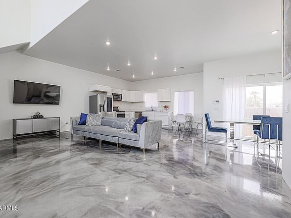 Built in 2019, this contemporary custom home greets you with an open concept living area with modern finishes, sleek epoxy finished flooring, and endless natural light spilling into the space from all angles. The main living level offers a spacious entertaining space with various furniture layout opportunities and the the half bath is perfect for your guests! Three bedrooms and two additional bathrooms on the second level, as well as private balcony. This home also offers a fabulous opportunity to create a private rooftop lounge! Located just five minutes away from Footprints Center, Chase Field and the amazing Warehouse District, where visionaries will see what others may not. Landscape options are endless in both the front and back of the home!