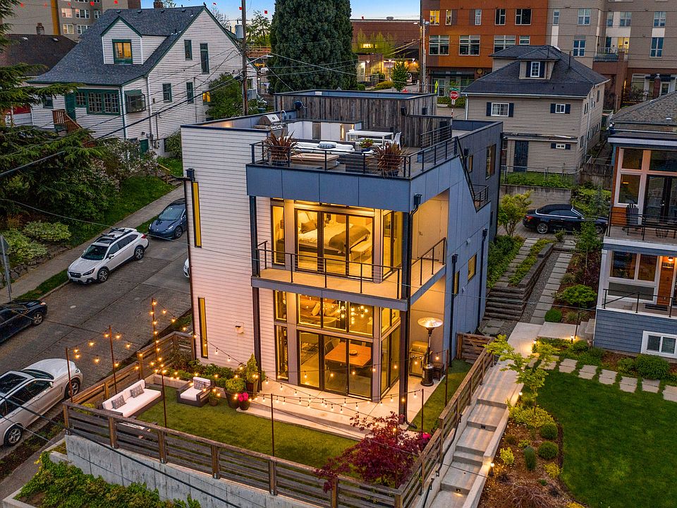 Beacon Hill Modern // Enjoy all Seattle has to offer at this ideally located custom construction modern masterpiece. Two blocks from light rail with 270* views across the horizon, the home was constructed in 2015 by 47 North Development as owner's primary residence. Flexible greatroom floorplan & top-of-the-line finishes throughout. Radiant heat concrete flooring, AC, 12' ceilings, cold rolled steel fireplace, rooftop kitchen w/ gas fire pit, terraced yard, closet systems, full two car garage.