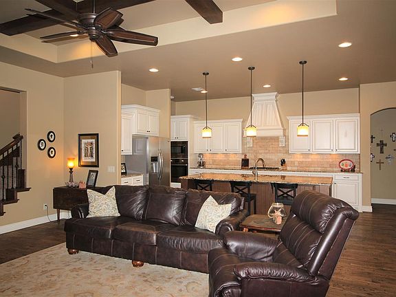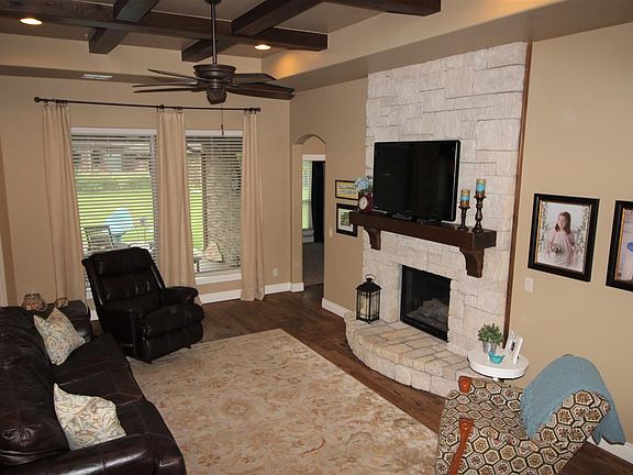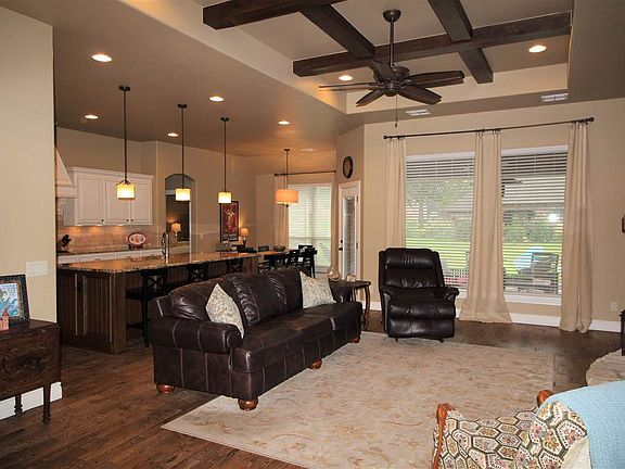It's that time of year to FALL in love with this immaculate custom Todd Kraybill home. Walk into the beauty of this spacious home that has everything you could ever dream! A large open floor plan with distressed hard wood flooring throughout much of the downstairs, added to the gorgeous stone hearth and coffered beam ceiling in the living area all create a comfortable and inviting atmosphere. A large granite island and custom painted glazed cabinets make the kitchen absolutely stunning; add a large walk-in pantry off the kitchen and you have more storage than you can imagine! Two of the downstairs bedrooms share a large Jack-and-Jill bathroom, and the other room has it's own bathroom off of it that also doubles as the guest bath. With large closets in every room, there is an abundance of hanging and shelving space. A bonus room or 5th bedroom with a full bath and large closet are upstairs, along with a walk-out attic space for easy storage. Downstairs the master suite leads through the master bathroom and closet to the laundry room; off the laundry is a mud room into the over-sized three car garage with an in ground storm shelter. Built on a larger than normal lot for Berry Creek this home also offers a great covered patio space with stained concrete and added landscaping for more privacy. Being walking distance to the Berry Creek clubhouse, pool, and new playground makes it easy for everyone in the family to stay more active. Minutes from Oklahoma State University, Stillwater Middle School, and Sangre Elementary make it a convenient location to call home. Call to schedule a showing today