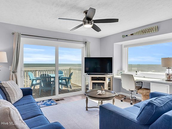BACK UP OFFERS WELCOME ***SELLER OFFERING REMAINING 2025 HOA DUES PAID WITH ACCEPTABLE OFFER BY JULY 15TH*** Located in the desirable Ocean Dunes Resort community in Kure Beach, this 3 bedroom, 2 bath, top floor end unit offers stunning Atlantic Ocean views and prime oceanfront living. The open floor plan maximizes natural light and coastal views. The kitchen features custom cabinetry, modern pendant lighting, and counter seating, while the adjacent dining area offers plenty of space for entertaining. A built-in desk with an ocean-view window makes the living area ideal for remote work. The living room opens onto a spacious balcony, perfect for enjoying morning coffee or evening sunsets. The primary suite also offers direct balcony access, allowing you to wake up to the soothing sound of the waves. Ocean Dunes Resort offers a variety of amenities, including multiple outdoor pools, an indoor pool, a fitness center, a hot tub, tennis and basketball courts, several outdoor showers, a community room and private beach access. The community is well-managed, with HOA fees covering cable, pest control, sewer, water, trash, general maintenance of common areas & structures, streetlights, all three pools, hot tub, playground/picnic area, fitness center, tennis, basketball and pickleball courts, roof & structural repairs, and flood & master insurance as well. Based on other units in Ocean Dunes, this unit has strong rental potential and is an ideal opportunity for those seeking a primary residence, vacation home, or investment property. Offered fully furnished, this turnkey condo is ready for you to start enjoying the coastal lifestyle. Don't miss your chance to own this beautiful oceanfront getaway—schedule your showing today!