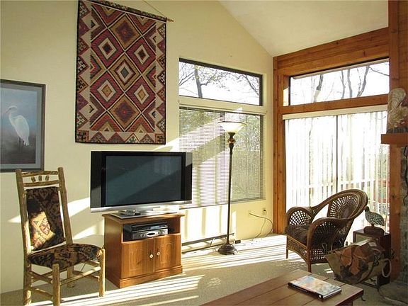 Three levels of living space with bedrooms and baths on every level! All overlooking the 12th green of Hidden Valley's Golf Course! This 4 bedroom, 3.5 bath interior home has 3 transom windows allowing the morning sun to light up the living, dining and kitchen areas! The living room has cathedral ceilings & a mountain stone wood burning fireplace that is enjoyed by all with this open floor plan. You'll also find a balcony that is large enough for patio furniture and people! The master bedroom with bath and a loft area are on the upper level with 2 bedrooms including a bath and a half on the main level. There's a closed entry that keeps the elements outside! The third, lower level has a family room that walks out to ground level along with the fourth bedroom & a full bath! 3 levels allow for flexibility when it comes to entertaining! The property is being sold with furniture, accessories & appliances including a side by side washer & dryer. Seller is offering a one year home warranty