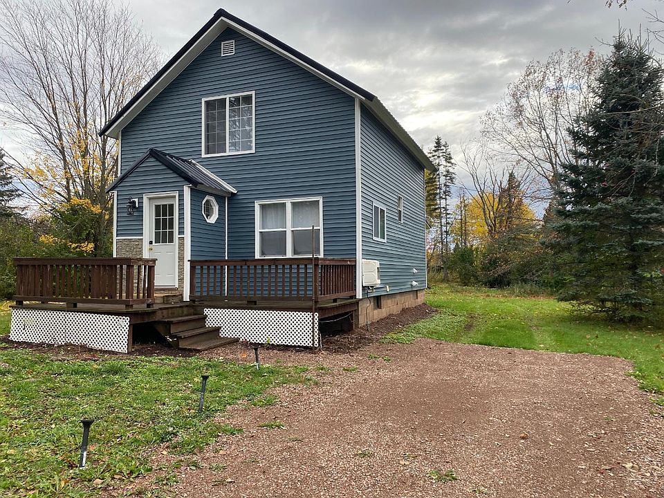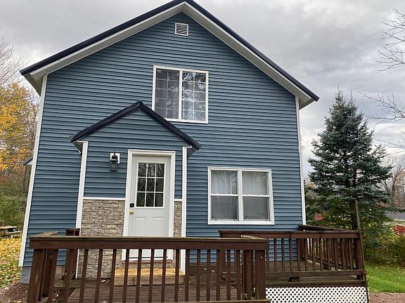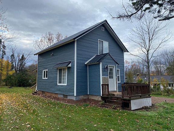 All the work is done for you! This 3 Bedroom, 2 bath home sits on nearly Half an Acre lot and has been completely remodeled. The exterior has new vinyl siding and metal roof. There is a quaint entry to the home that leads to an open concept living/dining area. You will find new laminate flooring throughout the home. The kitchen has all new cabinets and appliances. There is a main floor full bath as well as a utility closet. There is a back door off the kitchen that leads to a large covered deck overlooking the backyard. The upper floor offers 3 bedrooms including a Master that has a large full bathroom with walk in closet/storage area. The home is located in a quiet neighborhood on the outskirts of town with city utilities. Basement is solid with brand new furnace, and washer and dryer included. Near snowmobile trails and within close proximity to ski hills. This could make a great home or rental property!