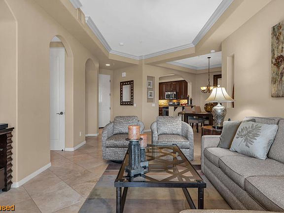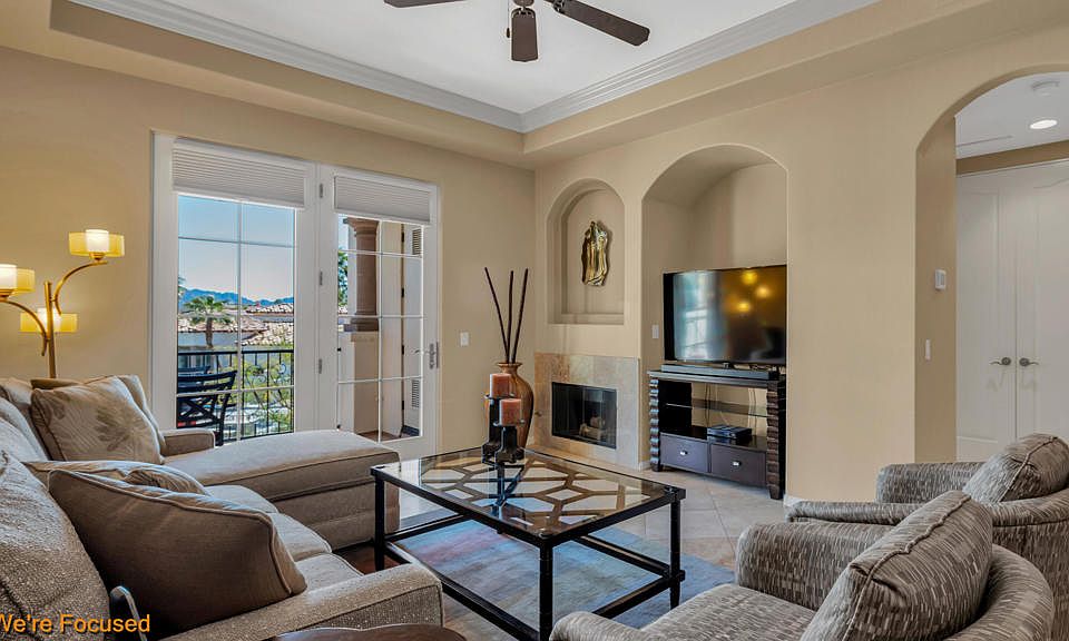 Welcome home to Villa Portofino, the desert's premier 55 or better community located in the heart of Palm Desert. Get ready to be impressed with this turnkey furnished second floor southeastern mountain view condo in pristine condition. High end furnishings and artwork all convey including down to the linens and kitchenware. The upgrades are plentiful and obvious from the moment you step inside. You will appreciate the level of craftsmanship with the solid core doors, fireplace in living room, wet bar in den, separate soaking tub and shower in master, dual vanity in master, closet organizers, plantation shutters, SS appliances, wet bar in den and designer paint. Crown Molding has been added and the Travertine floors have been extended throughout the living areas. Your HOA dues cover cable tv, internet, water, earthquake insurance, pest control, building maintenance, clubhouse dues, complimentary movies in the clubhouse, complimentary exercise classes and a host of social events. The 30,000 square foot clubhouse is just around the corner from your front door where you can enjoy a meal at the Bistro, a dip in the pool, a workout in the fitness center, happy hour at the bar , a card game or perhaps a Friday evening dance with live music. Villa Portofino is located minutes from El Paseo, Eisenhower medical center, Bristol Farms, fine dining, world class shopping and Indian Wells.