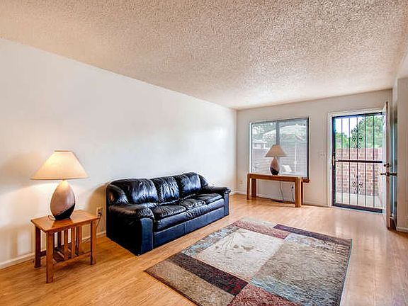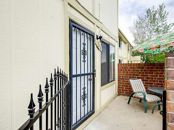 Wonderful light-filled end-unit townhome! This charming home is located in a quiet neighborhood yet close to great shopping and restaurants, with quick access to I-25. The sunny kitchen has great counter space and pantry cabinet, and a spacious dining area. The lovely exterior private patio is perfect for outdoor dining and grilling. A convenient ½ bath and roomy living room complete the main level. Upstairs find two bedrooms and a full bath. The large bright master bedroom has its own vanity, walk-in closet and private access to the bathroom. The basement area has storage, the laundry area and additional bedroom/den. There is a one-car garage with epoxy-coated floor and service door. Additional parking space is right next to the garage. Lots of common area in front of home to walk your dog and enjoy the outdoors. This is a rare end-unit with lots of light and won't last long!