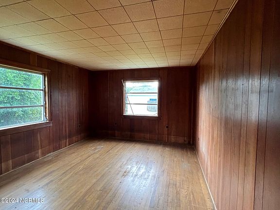 This large 5-bedroom home on a private lot has so much potential for the handyman, flipper, investor. Could easily be modified into a duplex or as a single-family residence. Has beautiful hardwood floors that seem very solid. Walls of plaster and drywall that need some TLC. One bathroom that's fairly complete and one bathroom that needs to be completed. Needs heat, water heater, and work to be done in the kitchen. There is power/electric in the house currently. There is also a large, wired garage/workshop in the back yard. Sits on almost 1 acre of land.