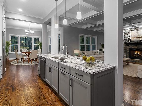 Huge estate lot in desirable North Raleigh. Custom home by award winning local builder. Luxury features including designer gourmet kitchen with center island, coffered and trey ceilings, hardwood floors, soaring ceilings with 8'ft doors. Opulent master suite has his and hers walk in closets,tub and sep shower, custom tile work. Potential in law suite on first floor.open bonus room and media area.Screened porch overlooking private wooded back yard. Gorgeous stone and trim work.Attention to detail abounds.