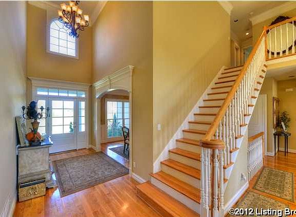 Luxury, Elegance, Spacious! This 2-story brick home is NOT a short sale or foreclosure, it's just priced to sell! Compare the square footage and features and youll see what we mean! Walk past the covered front porch, thru the glass front doors and into a large open floor plan! Hardwood floor in the foyer lead to a large Formal Dinning room to the left with wainscoting, trey ceiling, wonderful moldings and an arched alcove for a dining room piece. Ahead a 2 story Great Room, wired for sound features ceiling to wall windows, gas fireplace surrounded with by built in bookshelves and mantle. The large Eat-in Kitchen has an abundance of custom cabinetry, granite countertops, island bar surround, top quality stainless appliances and a large pantry and is wide open to a Hearth Room with an additional fireplace. Adjacent to the kitchen is a mud room with built-in bench and cubbies and a separate laundry room with cedar storage chest. The 1st floor Master Suite is spacious with its bay window sitting area. The Master Bath with multi-jet shower, whirlpool tub with cabinet front, his/her vanities and granite tops. On the 2nd floor three large Bedrooms sharing two full baths. The Finished Walk-Out Lower Level features a Family/Media Room, Billiards area, custom bar, 5th bedroom, full bath and a "flex" room that could be used as an exercise room / office / playroom. Theres an additional 3-car garage with hot and cold-water spigot. Other features include wiring for security system, professional landscaping, full rear deck, lower level patio and hardwood flooring throughout much of the first floor. Across the street from "award wining" Oldham county elementary, middle, and high schools.