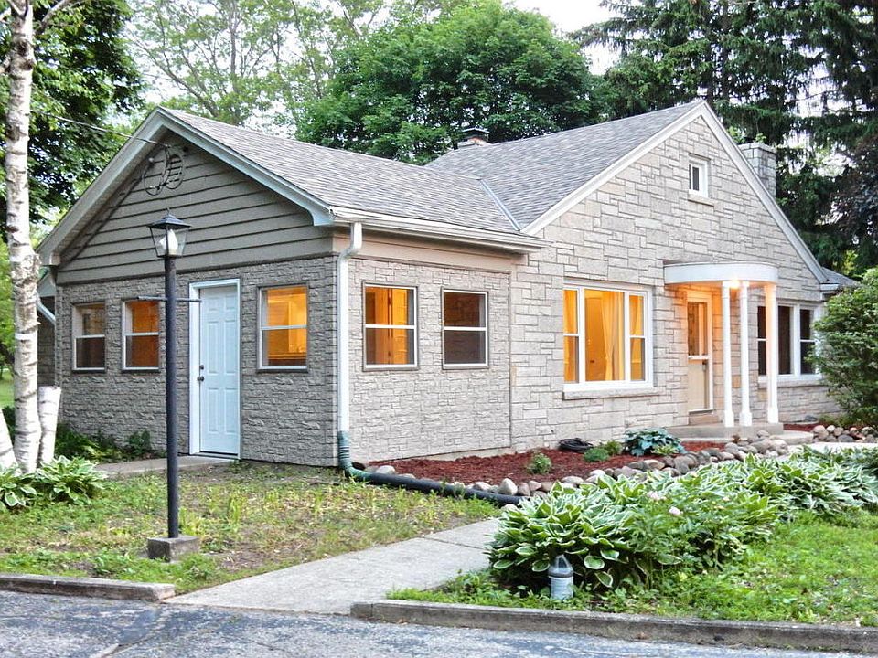 Updated mid-century lannon stone ranch on a large 2.27 acre lot! Updated kitchen cabinets, new appliances, sink and counters. Updated flooring throughout, and remodeled baths. New roof, windows, siding & air all within the past 5 years. Large living room with natural fireplace flanked by built-in bookcases. French doors off the dining to 3-season room. Two additional bonus rooms upstairs could be 4th & 5th bedrooms. Lower level has a 2nd fireplace in need of a flue-liner and finishing touches to make a great rec room space. Newer oversized garage could fit 3 cars.