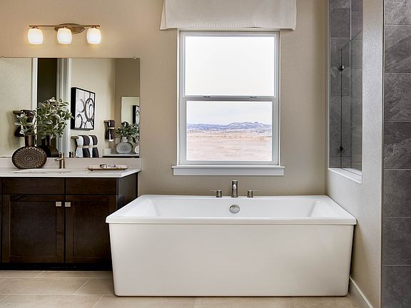MLS#6416046 REPRESENTATIVE PHOTOS ADDED. Built by Taylor Morriosn, October Completion! Discover effortless ranch style living in the Columbine plan at Trails at Crowfoot. An impressive foyer greets you and leads you into the kitchen with an eat-in island that overlooks a bright gathering room and casual dining area. With a sought-after split bedroom design, the Columbine offers homeowners superb privacy. An inviting guest suite and additional third bedroom with a full guest bath is located towards the front of the home while the luxurious owner's suite featuring a separate shower and free-standing tub and a large walk-in closet rests at the back of the home creating a true retreat. Everyday living is made easier with functional spaces like the large laundry room off the owner's entry. Structural options include: 9' finished basement, 12' center meet sliding glass door, traditional fireplace in gathering room, covered outdoor living area, free standing tub, additional bedroom 3 and a tankless water heater.