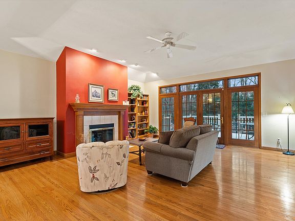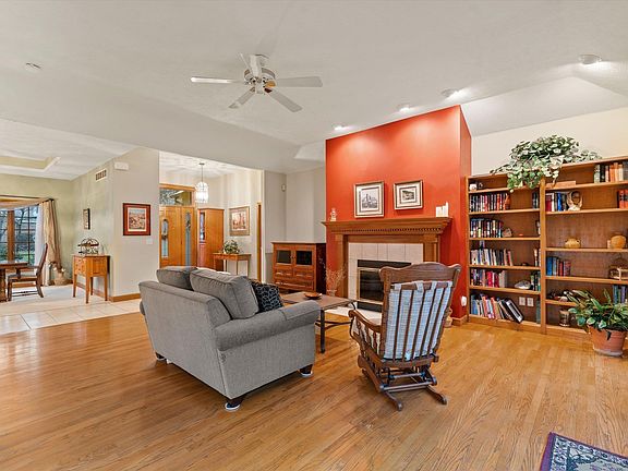 Nice custom-built ranch style home in a good location very close to many conveniences. Terrific open floorplan that is perfect for casual living or entertaining friends. Large great room w/ hardwood floors, tray 9'& 10' ceilings, gas fireplace and built-in bookcases. Relax all year around in the comfortable sunroom overlooking a quiet, wooded back yard. The kitchen offers granite countertops, pantry, double oven & gas range combo, refrigerator & microwave. Main floor laundry room is a bonus w/ W&D included, wash tub and storage cabinets. Split floor plan has a large primary bedroom w/ hardwood floors, double closets and a spacious bathroom. Two generous sized additional bedrooms on the main level. Wonderful back deck outside the french doors, koi pond and peaceful setting. Full basement is large and has lots of potential for a workshop, exercise or craft room, or rec room. Roof, furnace and A/C 2 years old, wtr heater 4 yrs.