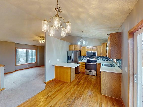 This well-maintained 3BR/2BA split-level in Big Lake offers a fantastic location near Bluff Park and inviting spaces throughout. A spacious foyer and vaulted ceilings welcome you inside. Enjoy a comfortable living room that flows into the dining area with walkout access to a maintenance-free deck. Hardwood floors extend from the dining room into the kitchen, featuring a breakfast bar, stainless steel appliances, and a tiled backsplash. The primary bedroom includes a private bath with dual sinks and a walk-in closet. Additional highlights include an irrigation system and an oversized, insulated, heated 3-car garage. The unfinished lower level provides excellent potential for added living space. Recent updates include a new roof (July 2023), new siding (August 2023), and added attic insulation.