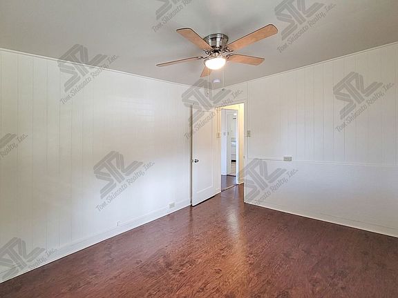 This upstairs unit has 2 bedrooms, 1 bathroom, kitchen and lanai . Includes refrigerator, range, ceiling fans, and new lights!